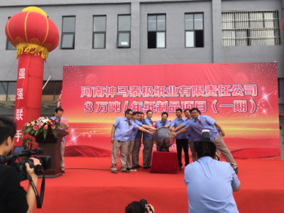 2017年9月29日,河南神馬泰極紙業(yè)有限責(zé)任公司一期投產(chǎn)儀式隆重舉辦,這是神馬集團(tuán)和泰極集團(tuán)強(qiáng)強(qiáng)聯(lián)手,譜寫新的篇章的起點(diǎn),這是信任的延伸和升華,是融合雙方資源,實(shí)現(xiàn)資源互補(bǔ),年產(chǎn)值將達(dá)到3萬噸的生產(chǎn)規(guī)模。泰極將以精湛的技術(shù)、卓越的產(chǎn)品、真誠的態(tài)度、一流的服務(wù),打造中原地區(qū)最大的化仟紙管、工業(yè)紙管、紙質(zhì)蜂窩板的生產(chǎn)商。此次開業(yè)投產(chǎn)儀式,是全新的起點(diǎn),神馬泰極將揚(yáng)起風(fēng)帆,快速駛進(jìn)市場(chǎng)經(jīng)濟(jì)的大潮。